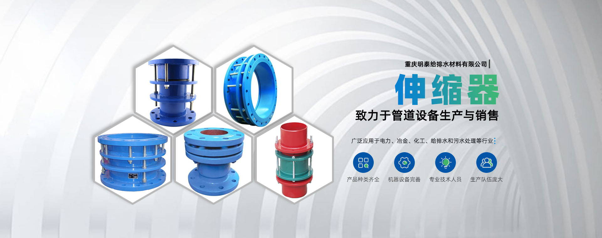 重慶明泰給排水材料有限公司是一家有著多年的銷售管理經(jīng)驗(yàn)、以及完善的售后、服務(wù)性企業(yè)公司。從80年代末期生產(chǎn)臺(tái)“伸縮接頭”和90年代中期研制生產(chǎn)的臺(tái)“蝶閥”開始,歷經(jīng)二十多年的發(fā)展,成為一家給排水企業(yè)。生產(chǎn)各種管道配件、給排水材料的專業(yè)企業(yè)。主要生產(chǎn)的產(chǎn)品有橡膠接頭系列,管道配件、伸縮器系列,鋼制傳力接頭系列,不銹鋼波紋補(bǔ)償器,防水套管系列。電廠煙、風(fēng)、煤管道補(bǔ)償器系列,閥門系列,環(huán)保凈水劑系列,產(chǎn)品設(shè)計(jì)獨(dú)特,結(jié)構(gòu)新穎合理,性能可靠,給工程施工、維修帶來方便和效益.....